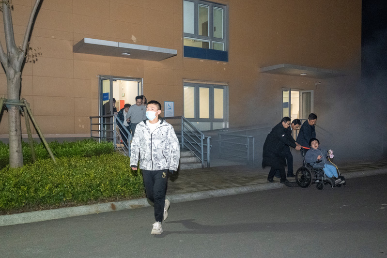 为进一步加强学校消防安全工作,增强师生消防安全意识和应急处置的自救能力,筑牢校园安全防线,4月9日晚,综合运行保障中心、学生服务管理中心组织开展24号楼学生公寓夜间消防疏散演练。党委副书记王科,董事长助理、综合运行保障中心主任吕智敏,综合运行保障中心副主任顾文辉,学生服务管理中心学工处副处长付志俊参加活动。24号楼学生公寓共计600余人参加本次演练。本次疏散演练模拟24号宿舍楼3F发生火情。为确保演练活动安全有序进行并取得实效,参演各部门高度重视,从演练内容、疏散路线、师生动员、物质保障、安全措施等多方面着手,精心策划,周密部署。