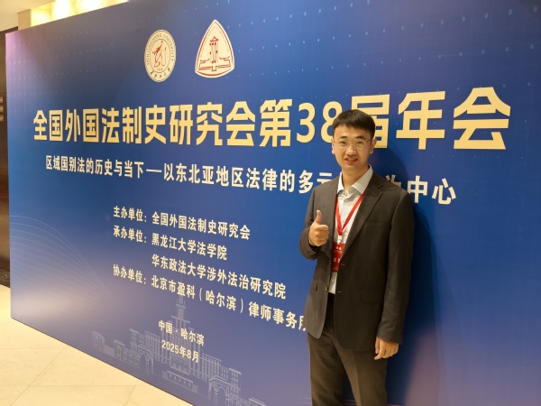 8月30日至31日,全国外国法制史研究会第三十八届年会在哈尔滨召开。本次年会由黑龙江大学法学院与华东政法大学涉外法治研究院联合承办,以“区域国别法的历史与当下——以东北亚地区法律的多元发展为中心”为主题,吸引全国200余位学者参与。我院法学系教师胡晓出席会议并获选研究会第十一届理事会理事。