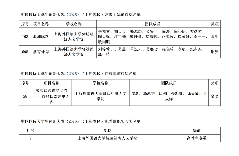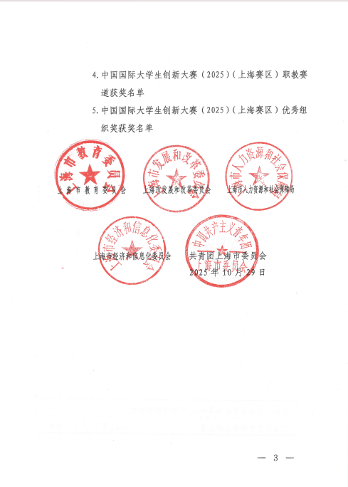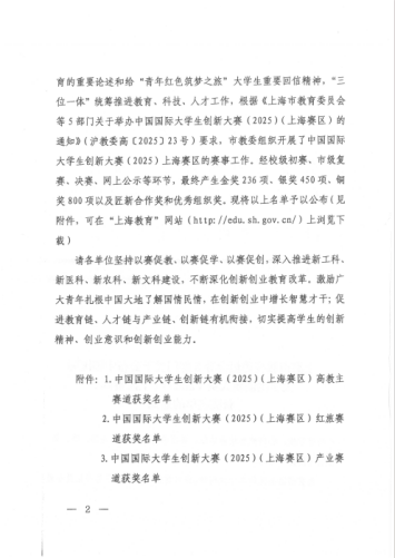 近日,2025年中国国际大学生创新大赛(上海赛区)结果公布。我校斩获上海赛区“高教”主赛道金奖1项、铜奖1项,“红旅”赛道荣获金奖1项。且我校荣获该项赛事上海赛区“优秀组织奖”。