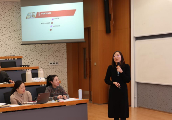 商学院黄益丹老师汇报了新加坡南洋理工大学教育管理硕士项目的研修成果。她以“融学于导·聚力育人”为主题,从学业精进、理论滋养与实践融合、未来展望三个维度展开分享。黄老师将留学期间所学的教育心理学、评估理论、创新教学方法创造性地应用于学生工作实践,打造了“‘青’心向党思政加油站”“十八而志·青春启航成人礼”等特色品牌活动,引入沉浸式情景教学法,将思政教育转化为视觉语言,真正做到了“以知促行、以行求知、知行合一”。