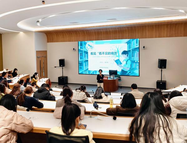 高校辅导员需要具备及时识别并妥善回应学生心理需求的能力。为此,2026年3月24日下午,心理健康辅导中心特邀请崇明区精神卫生中心副主任兼疾控精卫分中心主任李红梅,在国交楼312教室为我校教职工带来《看见“看不见的痛苦”——大学生常见心理疾病的表现与识别》专题讲座。全体辅导员、学生服务管理中心及综合运行保障中心相关人员参加了培训。